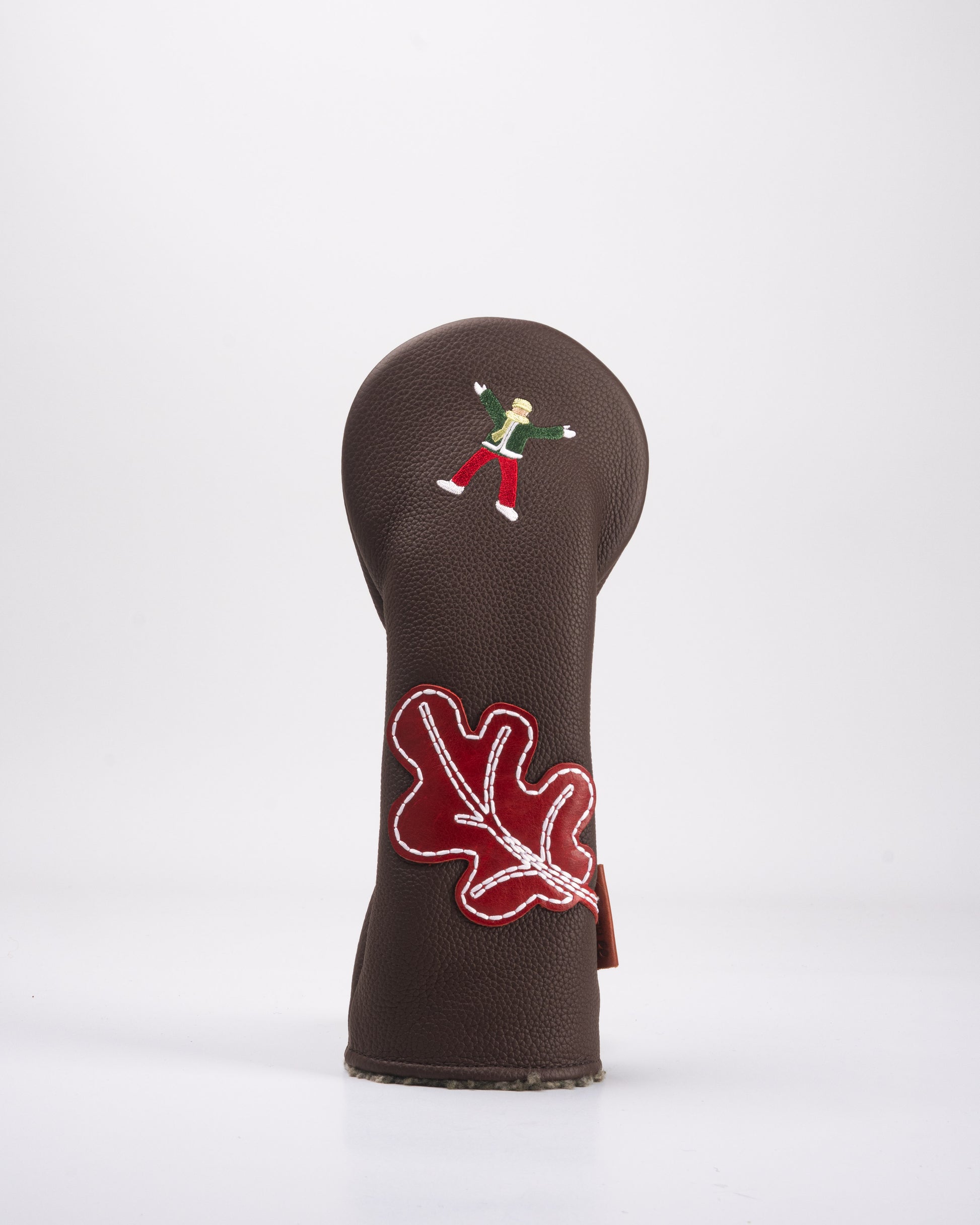 Crafted from premium pebbled genuine leather, the headcover features detailed embroidery paired with a distinctive leaf-shaped leather applique on the front.